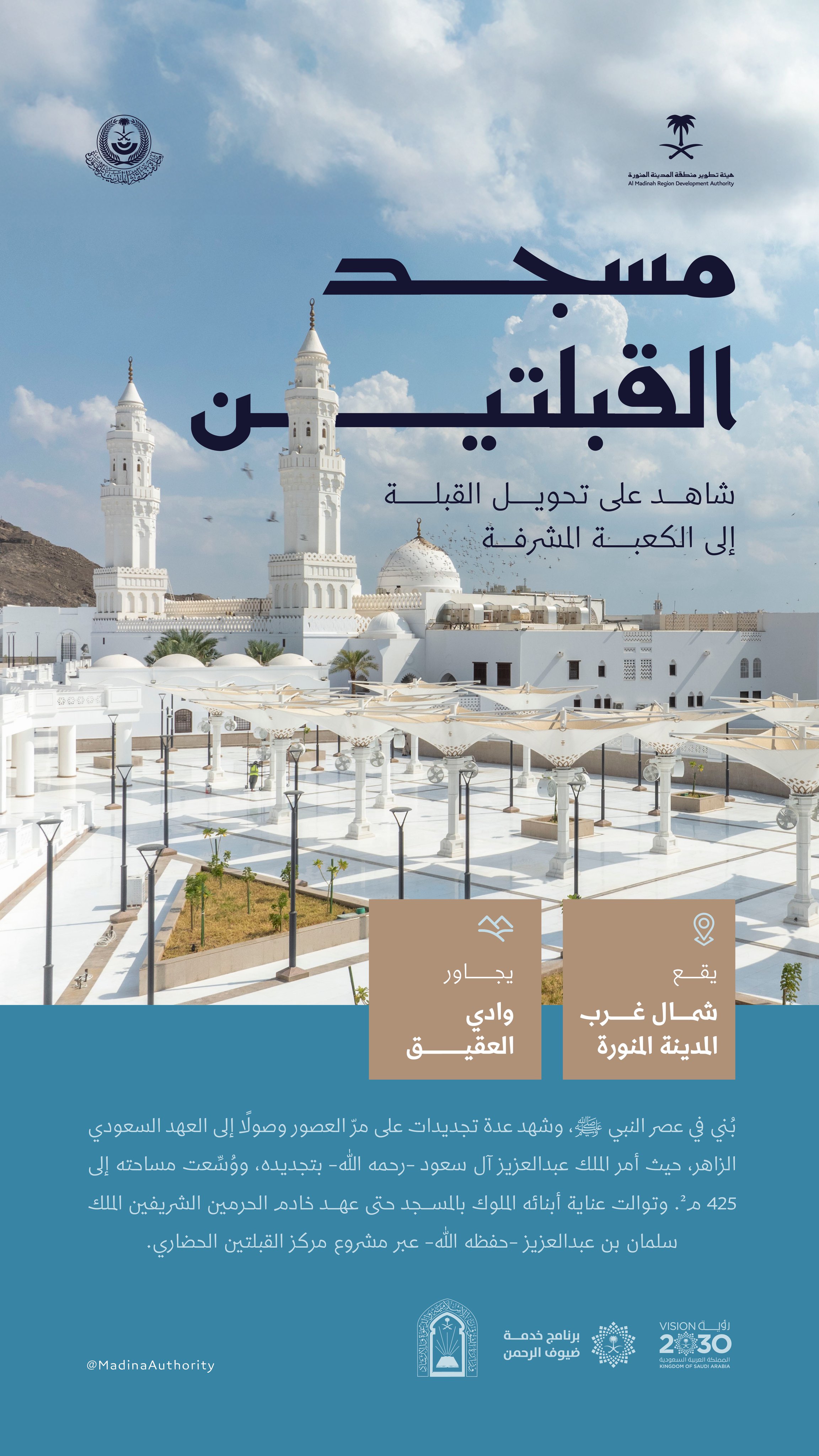 أمير منطقة المدينة المنورة يزور مسجد القبلتين ويطلع على الخدمات المقدمة للمصلين
